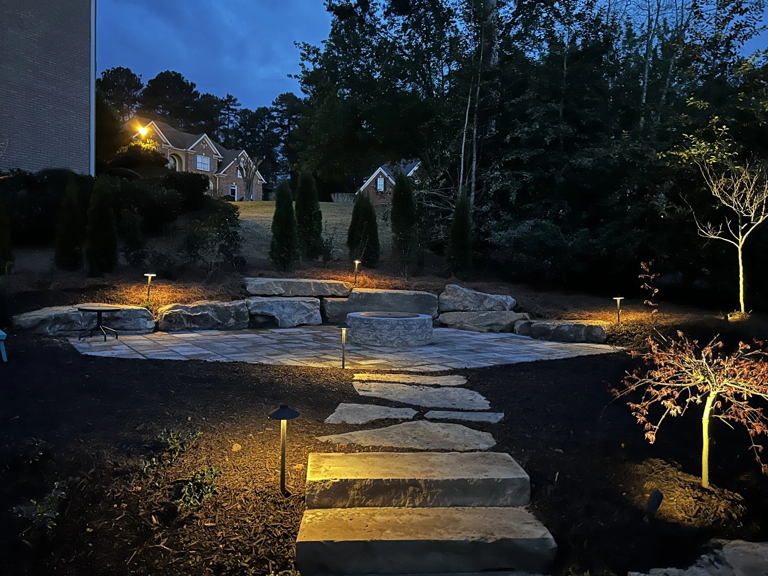 Outdoor lighting can add safety, elegance, and functionality to any space by brightening a walkway, livening up a patio area, or adding security with flood lights.